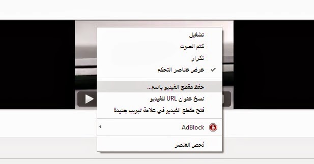 ثم تم إضغط على ايقونة الماوس اليمنى فوق الفيديو وإضغط على ” save as.